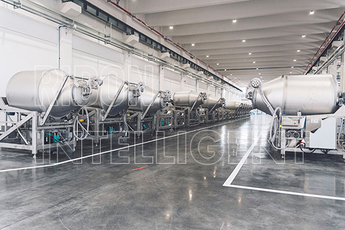 瑞邦总厂区面积达6万平方米,生产车间占地3.6万平方米。我们设有60个1700L-3500L真空滚揉机工位和30个4-8车烟熏炉组装工位,可同步进行装配。