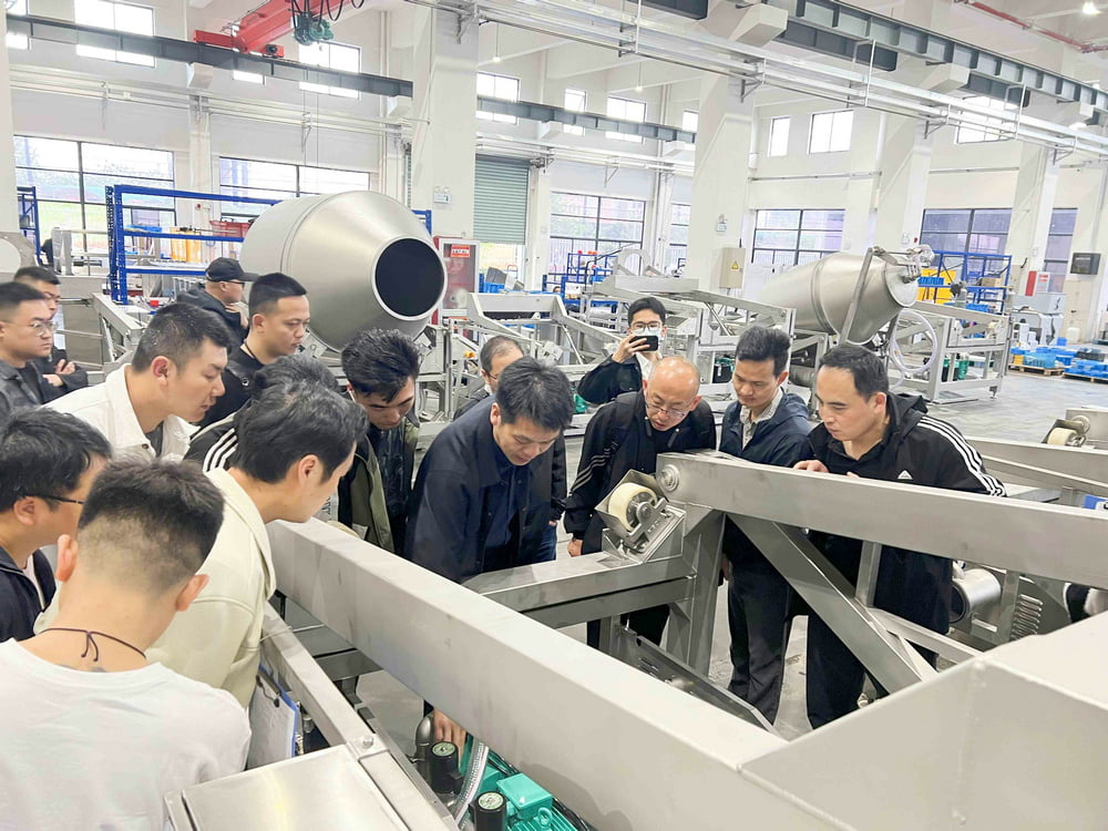 公司副总经理 水祥先生向在座的客户朋友们介绍了公司二十多年的发展历程及取得的一些成就,介绍了从一张不锈钢钢板到滚揉机成品的演变过程,重点向客户朋友们分享了属于瑞邦公司独特、完善、先进的制造工艺,获得了客户朋友们的一致好评!