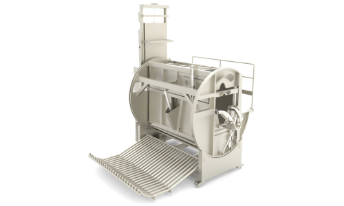 2)高速剥皮机:最大产能50头/小时配套电刺激及自动卸钩装置,可有效的保证肉品品质的同时保证运行平稳。(专利号ZL201620812704.3)