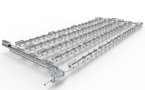 3)排酸间轨道自动分配系统:采用气动方式输送,能耗低、维修成本低,稳定可靠。(专利号ZL201620874535.6)