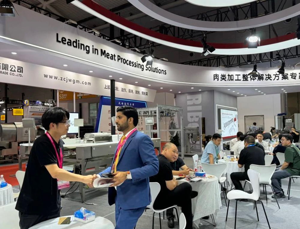 在丹桂飘香,硕果累累的金秋时节,备受瞩目的中国国际肉类工业展览会(CIMIE)在济南黄河国际会展中心隆重举办。浙江瑞邦智能装备股份有限公司亮相S3001展位,以饱满的热情,迎接来自各地的行业专家和客户同仁,在展会现场进行深度交流探讨。
