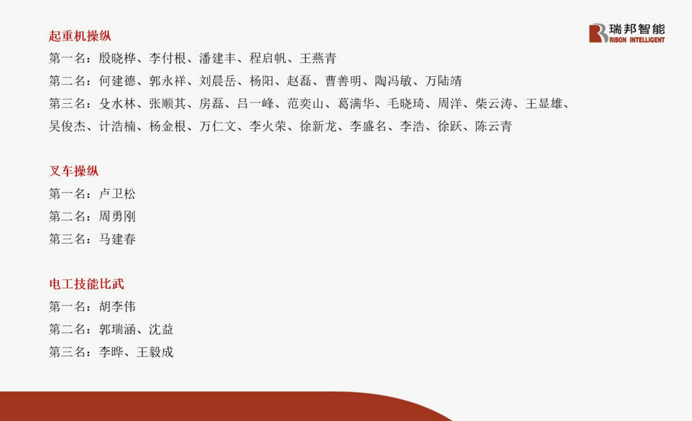 此次获胜选手均为生产一线部门人员,他们将工作中的专业技能转化为比赛中优异的成绩,以丰富的实战经验当好了瑞邦“质量建设”的排头兵,为全体参赛学员树立了“学以致用、用以养学”的优秀榜样,也为此次比武大赛画上了圆满成功的句号。
