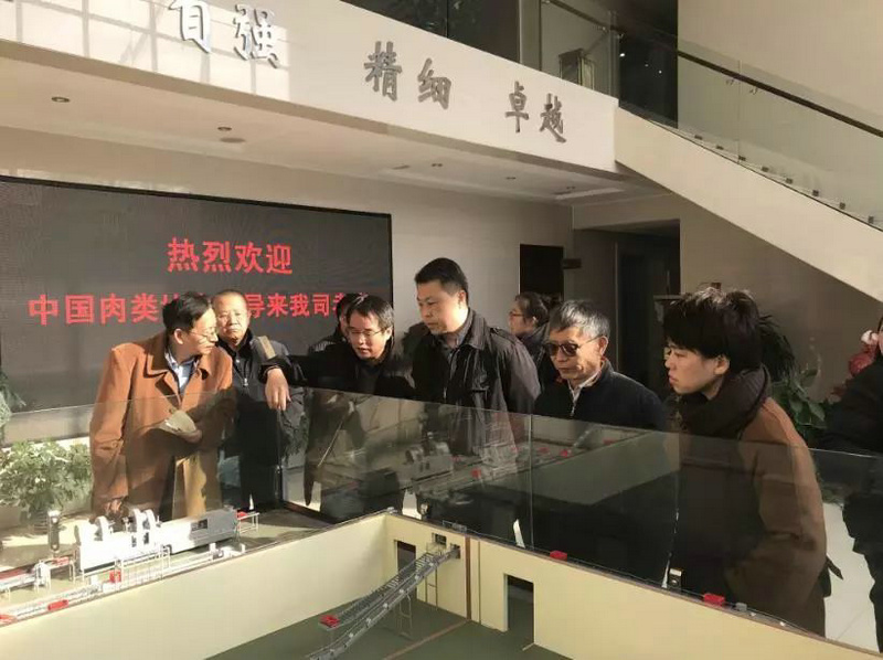 2017年12月9日上午,中国肉类协会常务副会长兼秘书长陈伟会长、中国肉类协会高级顾问,原国家进出口食品安全局原副局长鲍俊凯、中国肉类协会高级参事,牛羊分会秘书长高观携协会各成员单位领导莅临我司参观考察。在施明董事长和祝高永总经理的陪同下,参观了滚揉机、烟熏炉、智能输送线等产品制造流程,并深入各车间、仓库现场考察各项工作,详细地了解我司的人员管理、安全生产、产品质量等情况。