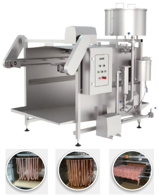 RY2000烟熏液杆式喷淋机是专门针对采用挂杆悬挂的香肠、培根、整个家禽等产品进行烟熏液淋浴处理的设备。