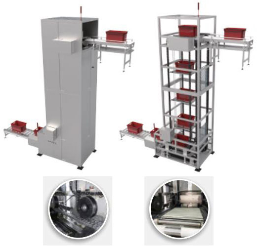 RSJZ型垂直提升机主要通过载货托盘升降实现货物的垂直上下输送,运用自动化控制技术实现物品的连续垂直和水平输送,是立体生产流水线连接的理想设备。其特别适用于食品加工厂自动化输送系统等环境较差的场合使用。