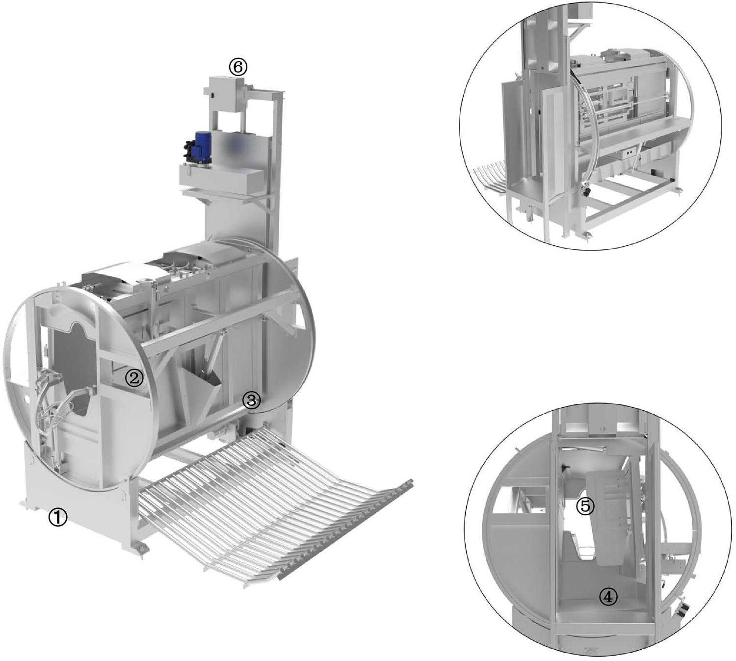 所有动作均由液压系统控制,共11个不锈钢油缸和一个液压电动机。