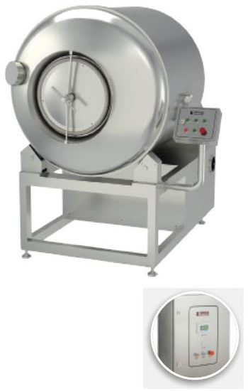 采用呼吸滚揉功能可以有效缩短滚揉时间、提高滚揉效率。数显式真空表方便随时掌握真空状况。